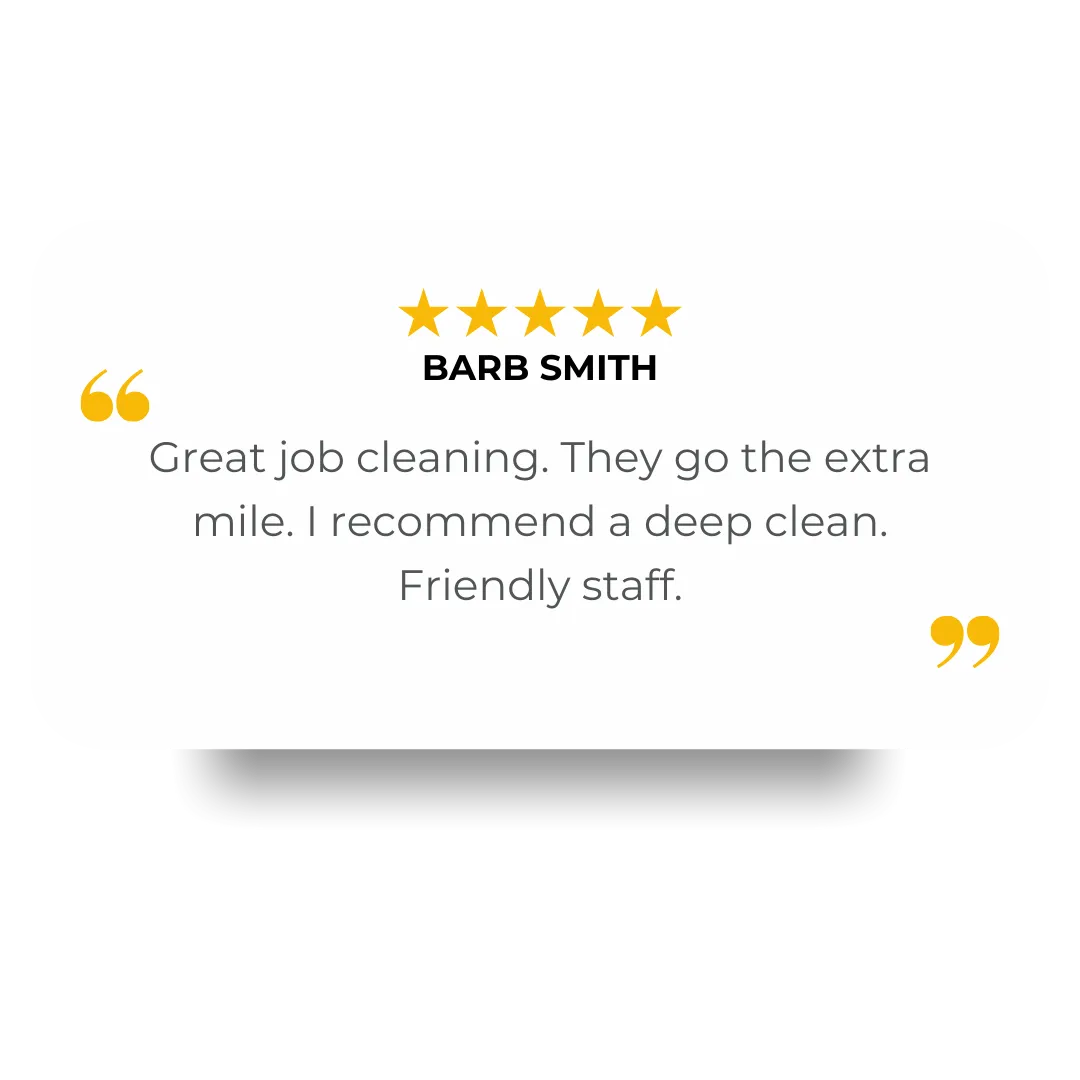 We genuinely care about our clients and their satisfaction. We take the time to understand your needs and deliver a personalized cleaning experience.